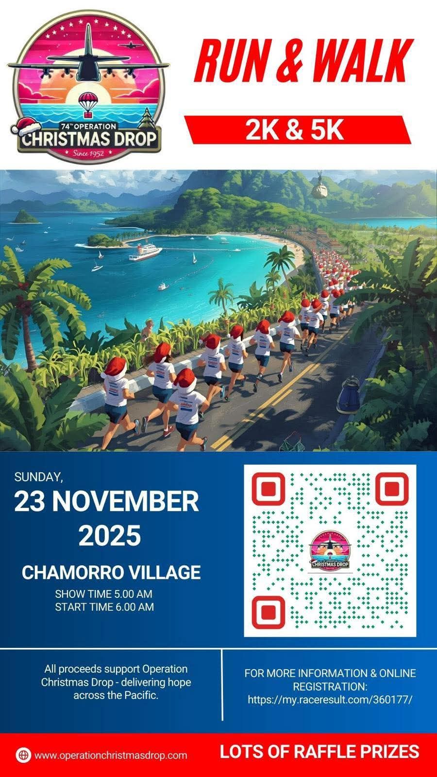 Join us for a meaningful run in support of Operation Christmas Drop (OCD) – the world’s longest-running U.S. Department of Defense humanitarian airlift operation. Since 1952, OCD has delivered critical supplies, food, educational materials, and holiday cheer to remote island communities across the Pacific.
