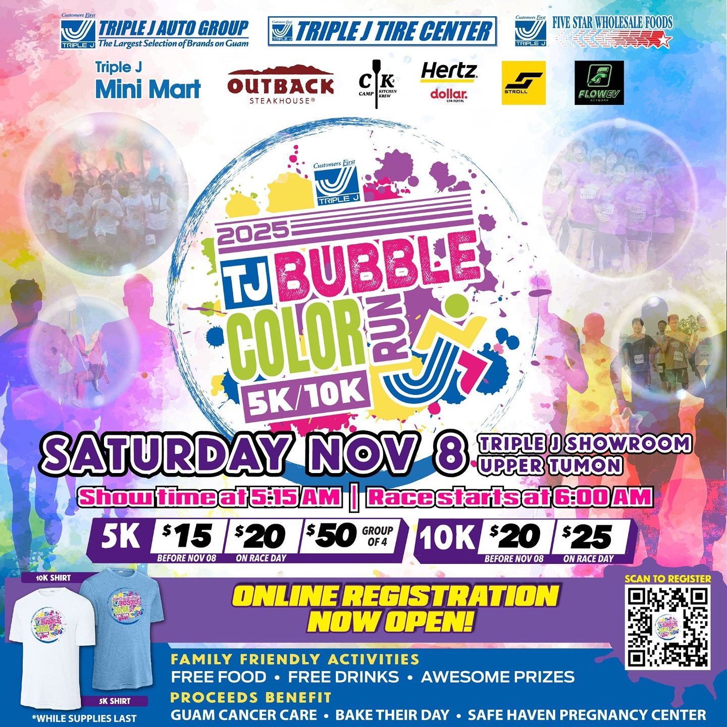 Get ready to run, laugh, and get colorful at the 2025 TJ Bubble Color Run! This fun-filled 5K/10K event is perfect for families, friends, and fitness lovers. Enjoy bubbles, color zones, and a vibrant atmosphere while supporting great local causes.