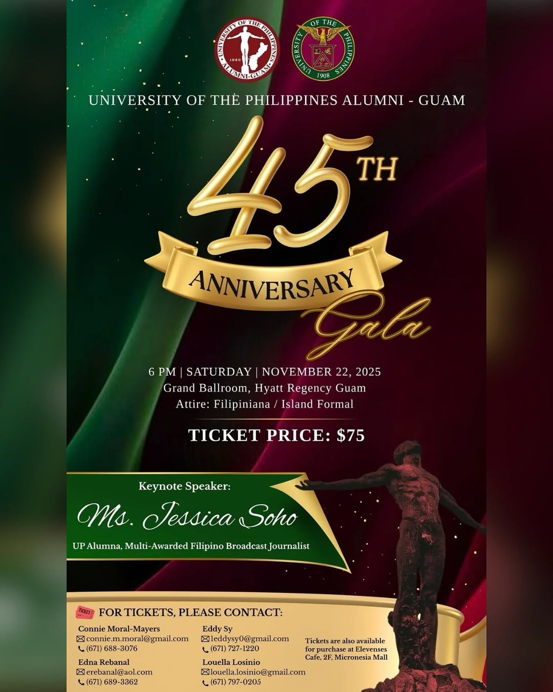 Join the University of the Philippines Alumni Association of Guam as we celebrate 45 years of excellence, unity, and community. This milestone event honors the legacy of UP graduates who have made an impact both locally and globally.