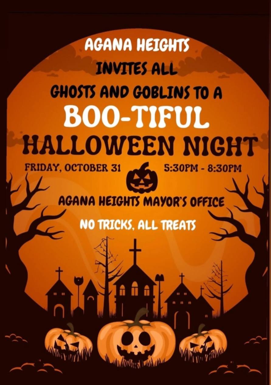 Agana Heights invites all ghosts and goblins to a boo-tiful Halloween night filled with festive fun and sweet surprises. Come in costume and enjoy a safe, family-friendly evening with no tricks—just treats!