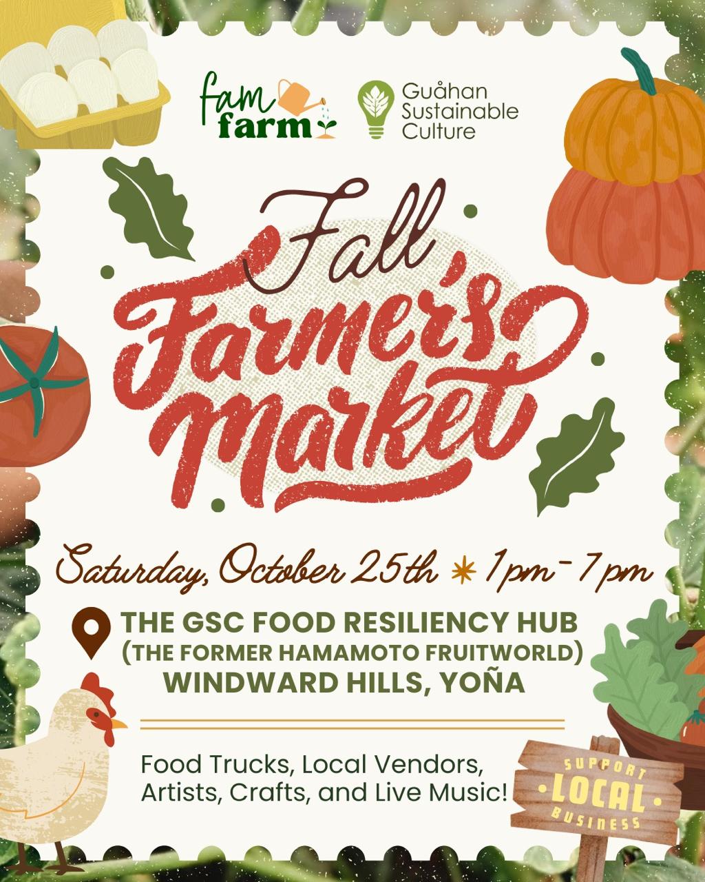 Save the Date! Fall Farmer's Market At the "GSC Food Resiliency Hub" (Former Hamamoto Fruitworld) Windward Hills, Yona