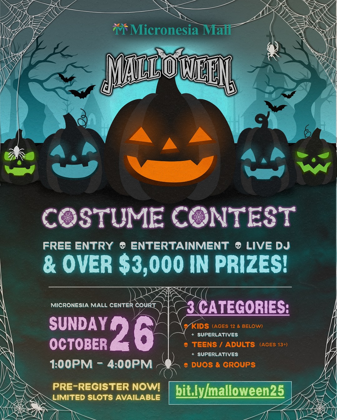 Celebrate Halloween in style at Mall-O-Ween, Micronesia Mall’s annual costume contest! Enjoy live entertainment, a DJ, and a chance to win part of over $3,000 in prizes. Pre-registration is required and slots are limited—don’t miss out!