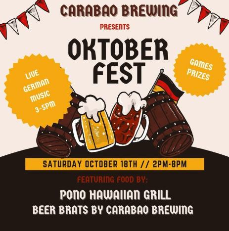 Celebrate Oktoberfest island-style with Carabao Brewing! Enjoy an afternoon of festive fun featuring live German music, games, prizes, and delicious food.
