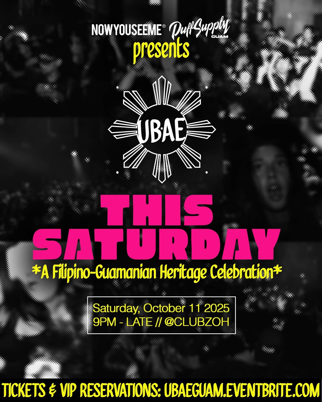 Celebrate the vibrant fusion of Filipino and Guamanian culture at UBAE, a high-energy heritage party featuring music, community, and island pride. Hosted at Club ZOH, this event promises a night of unforgettable vibes and cultural connection.