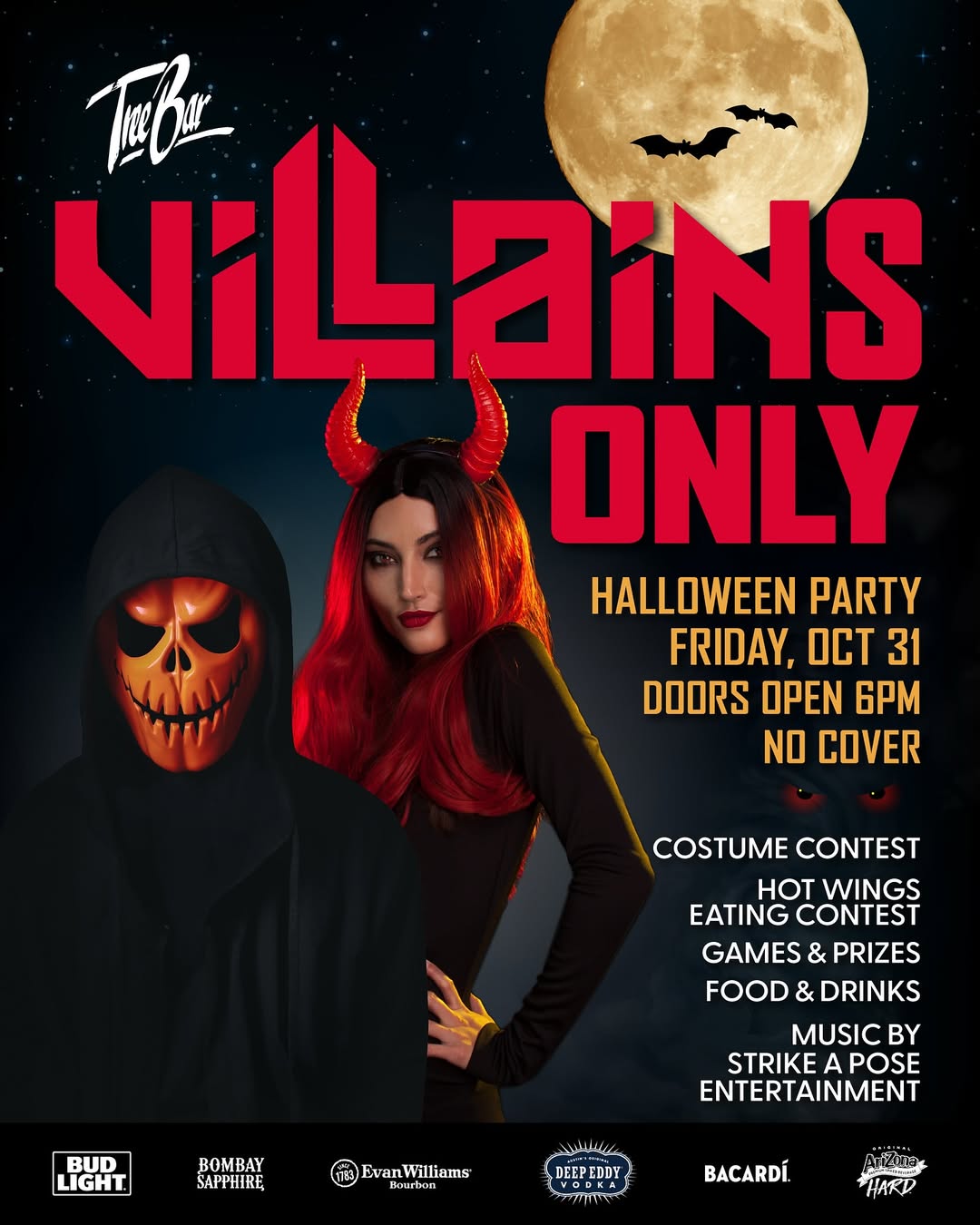 Get ready to haunt Tree Bar this Halloween, where you’ll be entertained with fun games, a spicy wing eating contest, dancing, food & drink specials and more! Costumes are optional but there’s a prize for the best Villain 🧛🏼