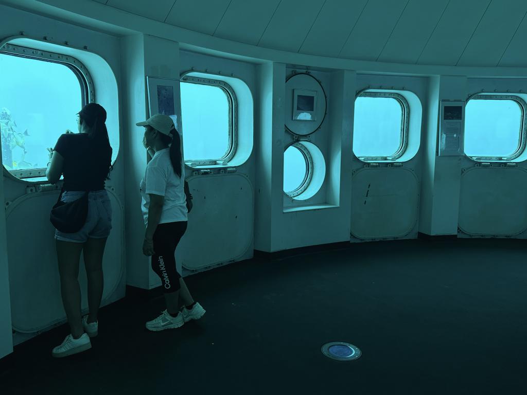 At the end of the boardwalk, friendly staff will guide you down the observatory, where you can enjoy circling and looking through the undersea.